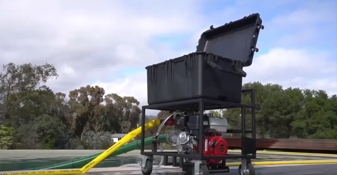 Jim insists the pump can be set up by homeowners to help firefighters when they arrive. For more information visit Fire Defense Service.