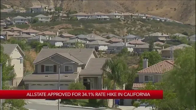 Sticker shock is coming to 350-thousand California homeowners insured by Allstate. The company has been approved to raise rates by an average of 34 percent. That’s the highest increase here in the past three years. The change all depends where customers live. Some could actually see rates drop by as much as 57-percent while at least one bill will soar nearly 650-percent. Allstate is only renewing policies, not writing new ones. State Farm is also asking the state to approve a 30-percent rate hike.