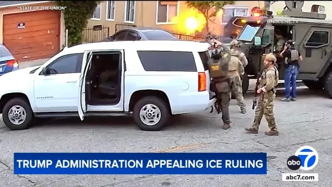 https://www.youtube.com/watch?v=-c0001OwP68YouTube @ ABC7The Trump Administration has filed a legal notice announcing its plans to appeal a judge’s order halting immigration raids in Southern Ca...
