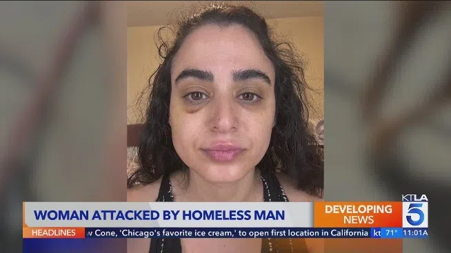 YouTube @ KTLA 5A woman says she was attacked by a homeless man while she walked her dog in the Fairfax district of Los Angeles. The unprovoked attack happened on June 24th, but the woman is just talk...