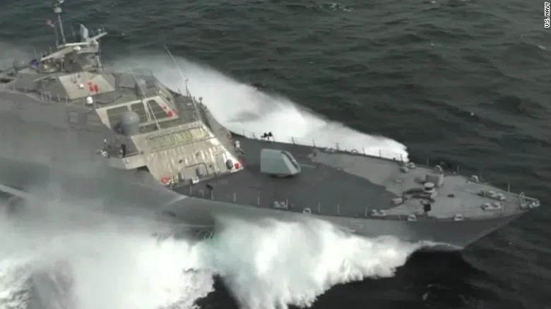 The U.S. Navy released footage of its newest warship, the USS Milwaukee, being tested at high speeds.