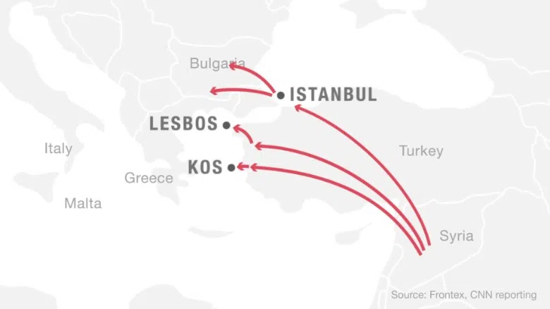 Syrian refugees swim to Europe